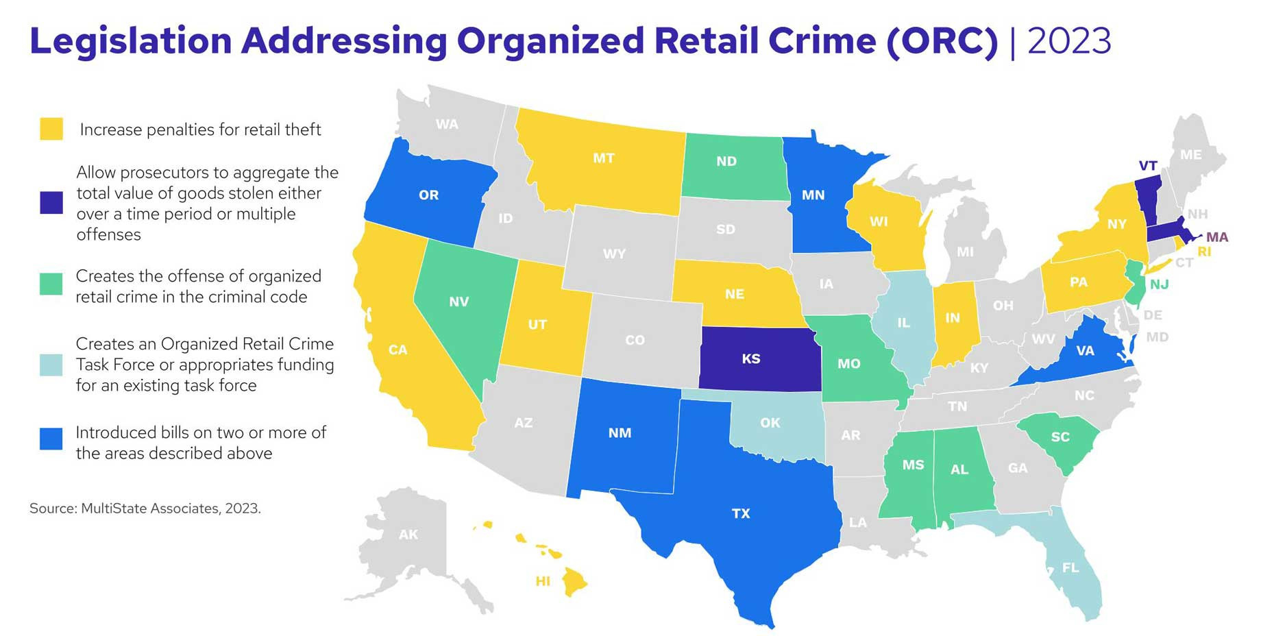 States have been more active on the ORC front, enacting 19 bills to broadly increase penalties, aggregate crimes across multiple jurisdictions, and provide additional funding for law enforcement. To date, 13 states have established an ORC task force to help coordinate investigations by law enforcement, prosecutors and businesses.