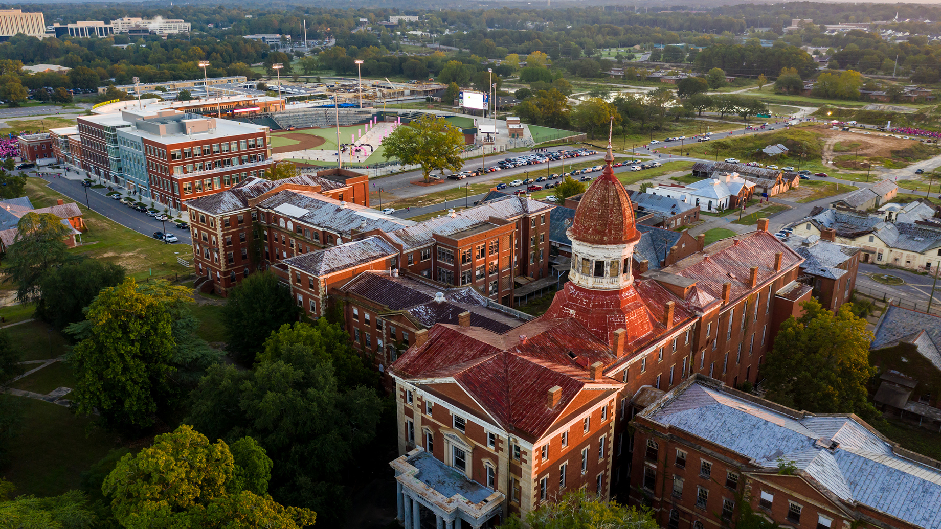 Hughes Development Corp. is redeveloping a 181-acre former mental hospital campus into The BullStreet District. A minor-league baseball stadium was delivered in 2016
