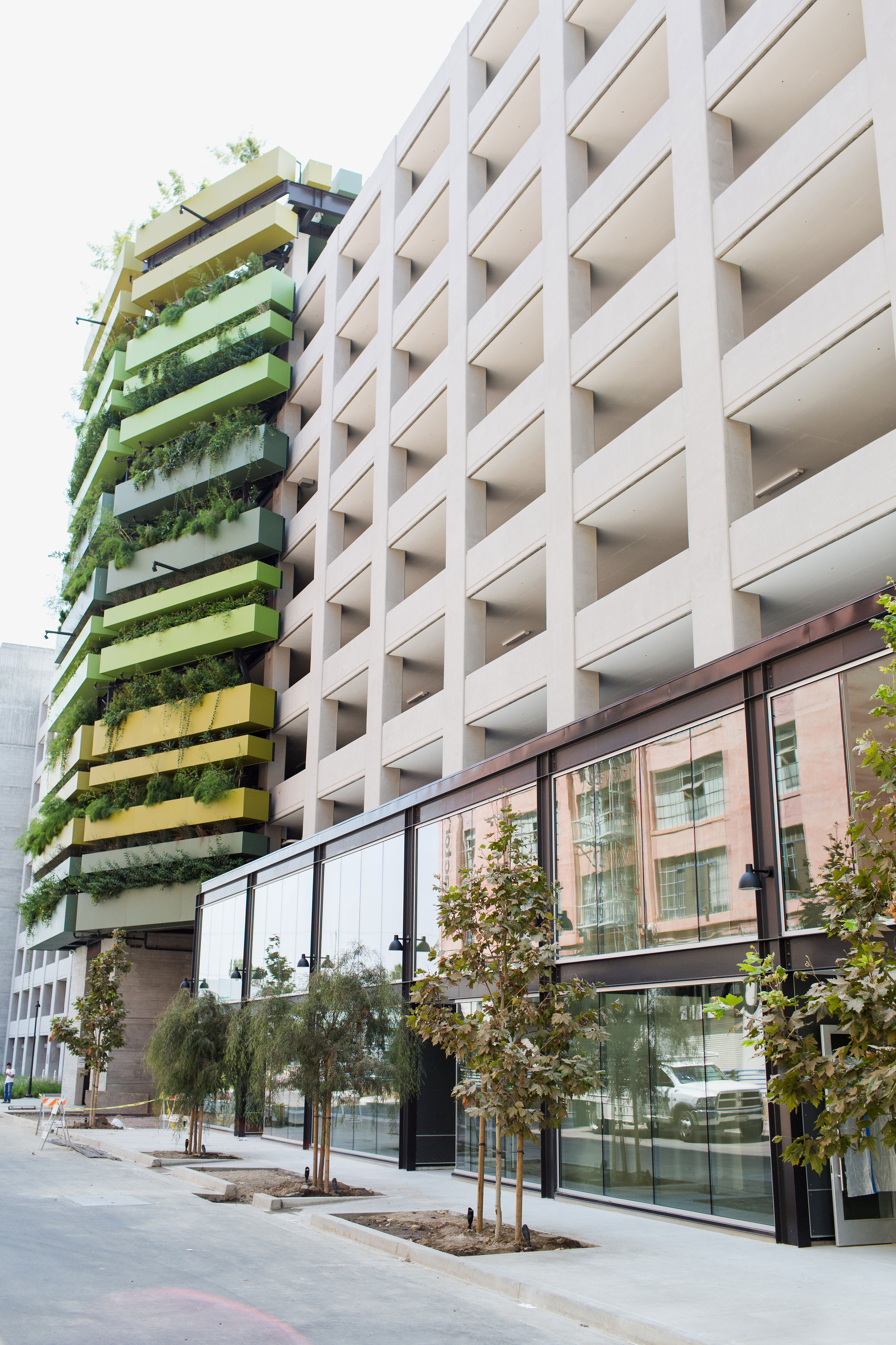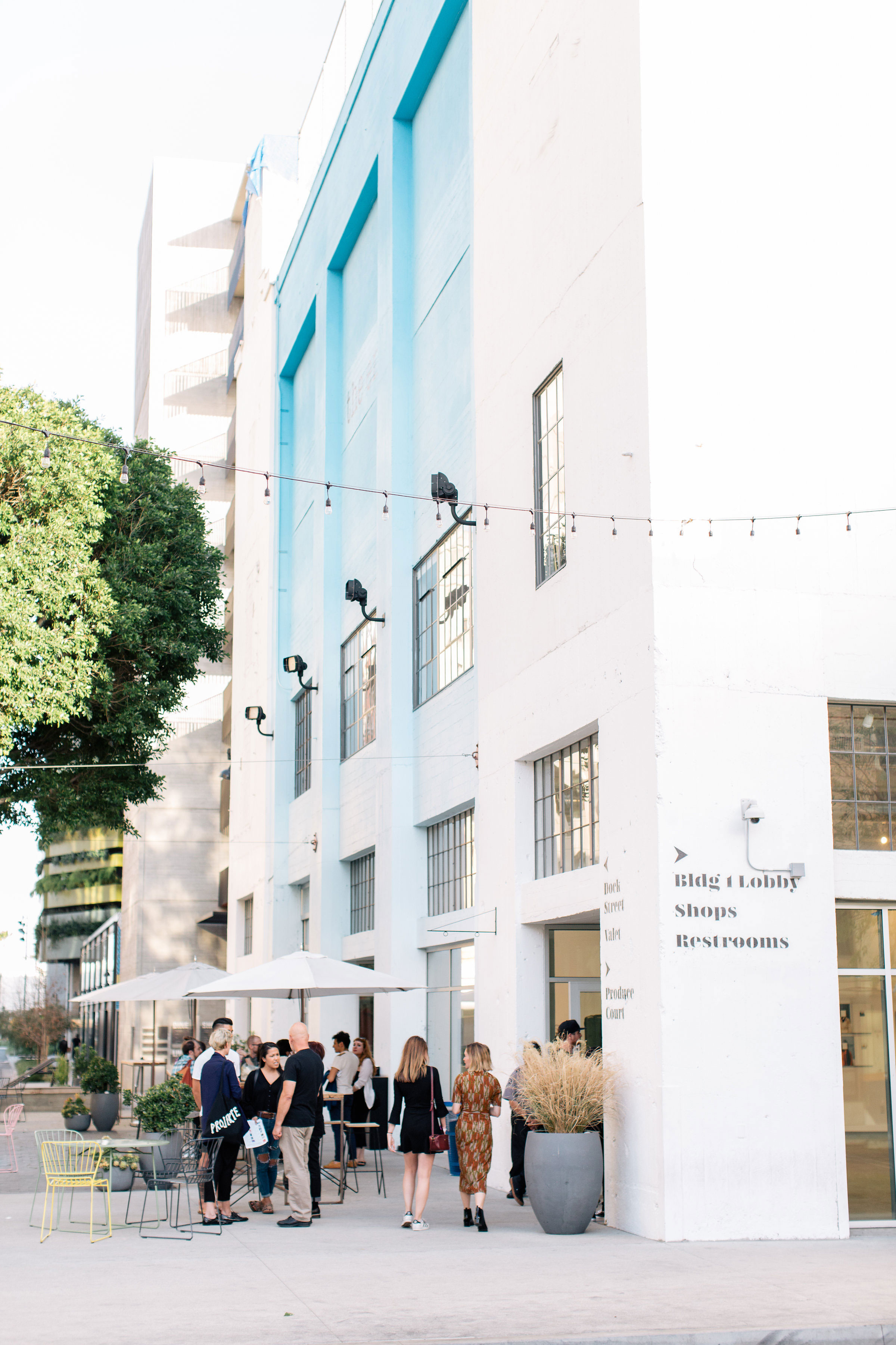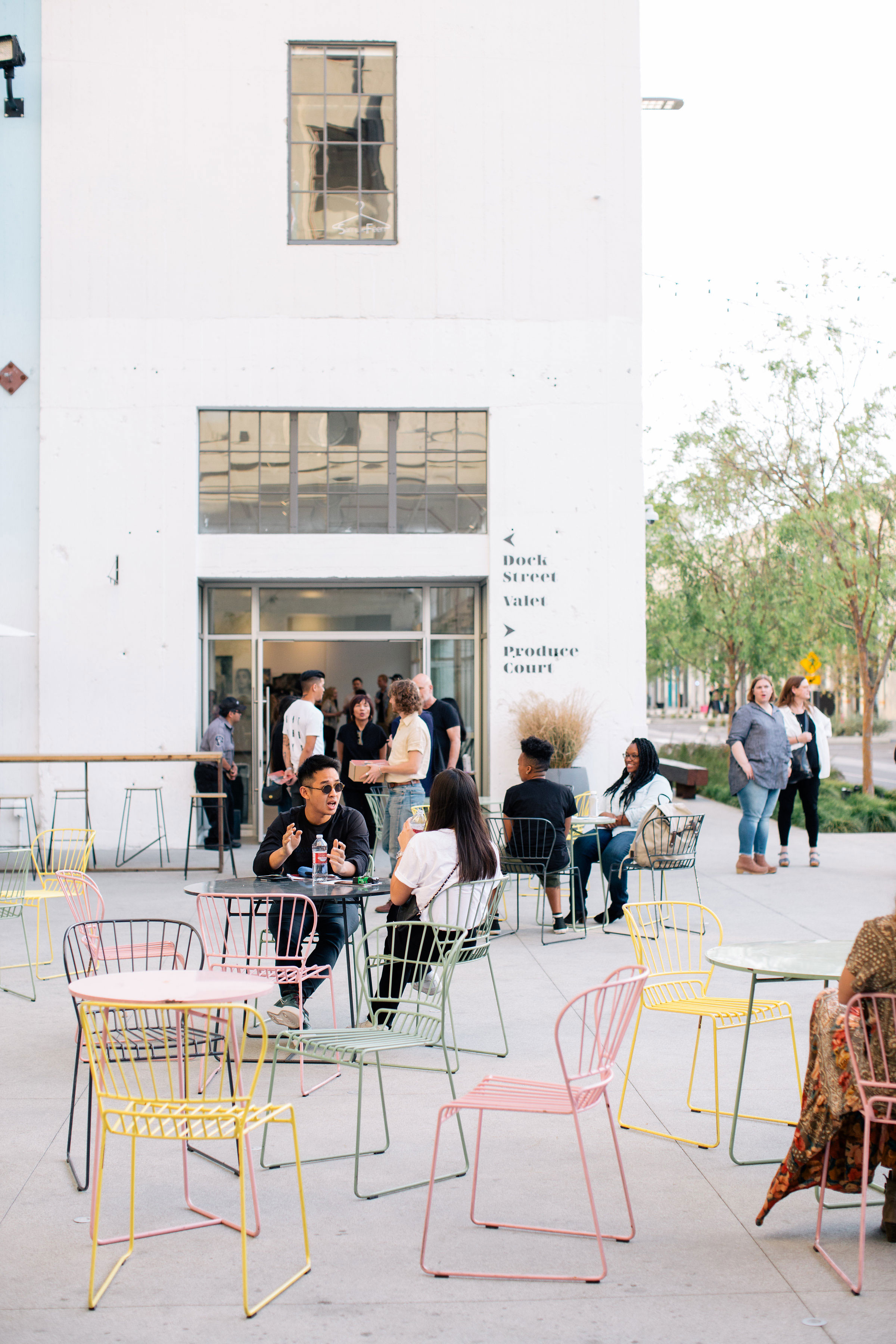 For example, the developer reached out to local artist Retna to create four large murals on the exteriors of three of the buildings. The artist has since relocated his studio and gallery to Row DTLA. Another well-known artist, Carly Kuhn, aka The Cartorialist, created a series of line drawings on the exterior of one of the buildings. “So," Fishbein said, "we’re always looking for local talent who can use these buildings as a canvas to do something really large scale and memorable."