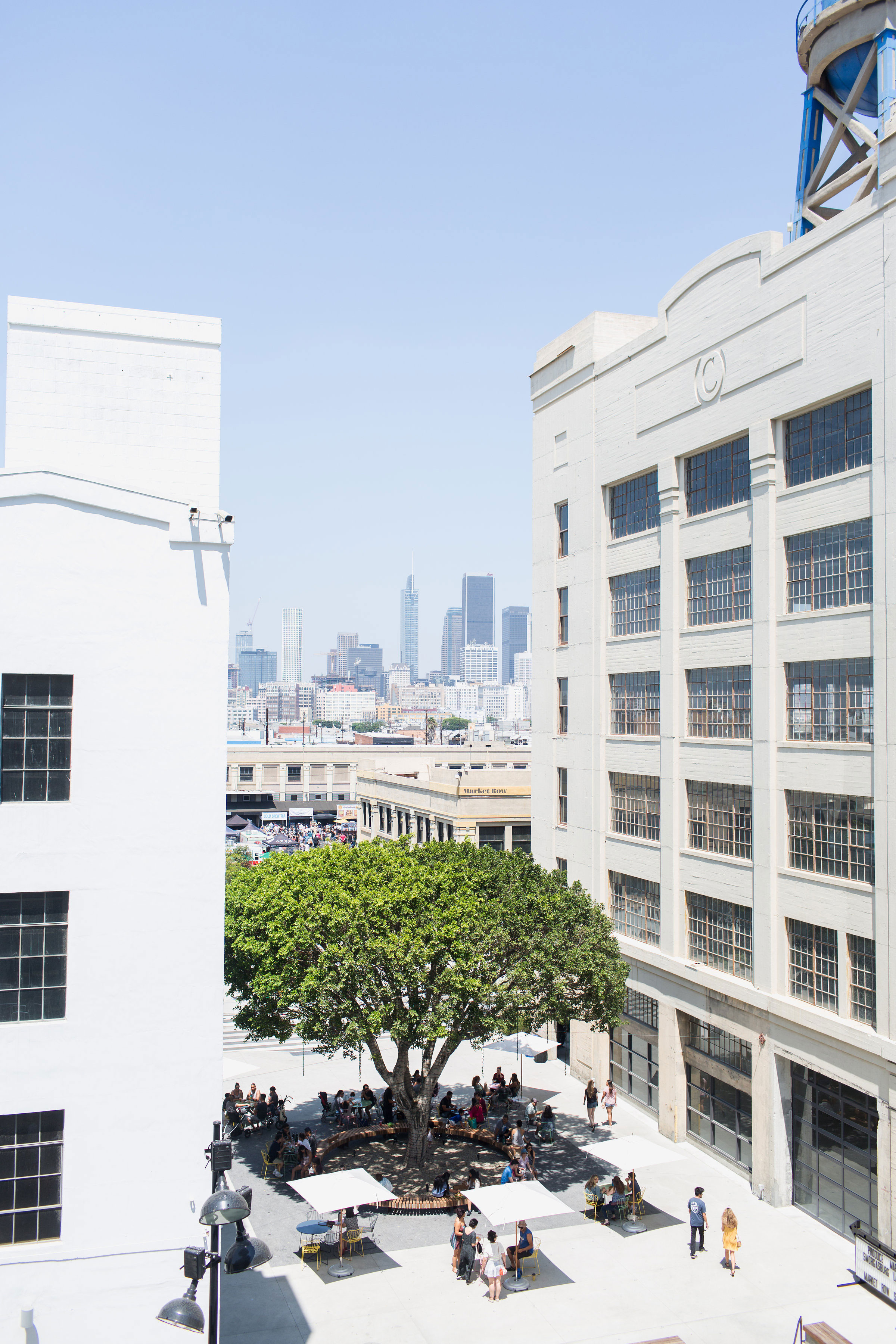Row DTLA occupies part of a 32-acre site formerly occupied by the L.A. Terminal Market, which was once the center of the city’s produce trade. In fact, Row DTLA has maintained that tradition and continues to host the city’s wholesale produce market that operates Mondays through Saturdays. The structures were built by the Southern Pacific Railroad between 1917 and 1923, and the repurposed space showcases original features, including the exposed concrete, as well as wood floors and brick walls in some of the buildings.