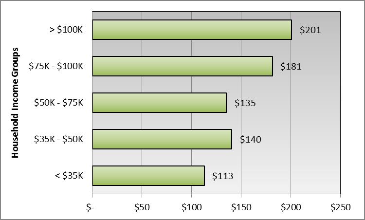 Figure 2: Average Weekly Shopping Center Spending by Household Income