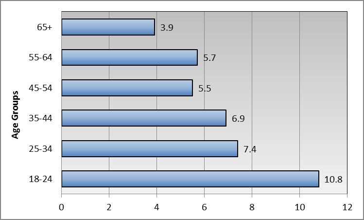 Figure 1: Average Weekly Trip Frequency for Goods and Services by Age